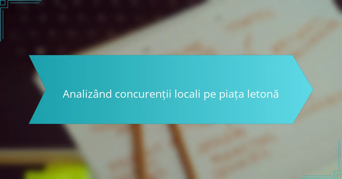 Analiza competitorilor locali pe piața din Letonia este esențială pentru înțelegerea peisajului competitiv și identificarea oportunităților potențiale pentru afacerea ta. Concentrându-te pe jucătorii cheie, prezența lor online și strategiile de publicitate, poți obține informații valoroase care să îți informeze propria abordare. Utilizarea diverselor instrumente analitice va îmbunătăți și mai mult înțelegerea ta asupra metricilor de performanță ale competitorilor, cum ar fi cota de piață și ratele de implicare a clienților.