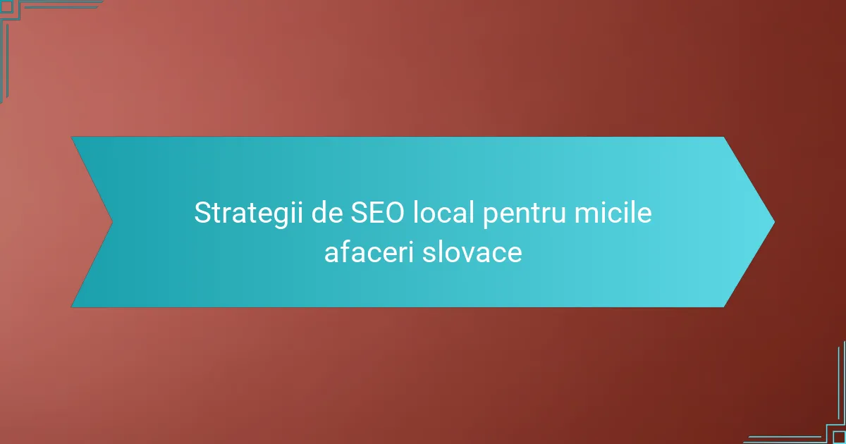 Care sunt strategiile eficiente de SEO local pentru micile afaceri slovace?